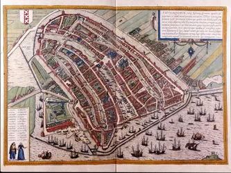 Plan von Amsterdam (Amstelredamum), Niederlande(Plan of Amsterdam (Amstelredamum), Netherlands)Franz Hogenberg |