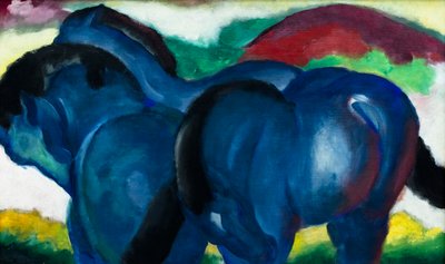 Die kleinen blauen Pferde von Franz Marc. Verfügbar als Kunstdruck auf Leinwand, Fotopapier, Aquarellkarton, Naturpapier oder Japanpapier.