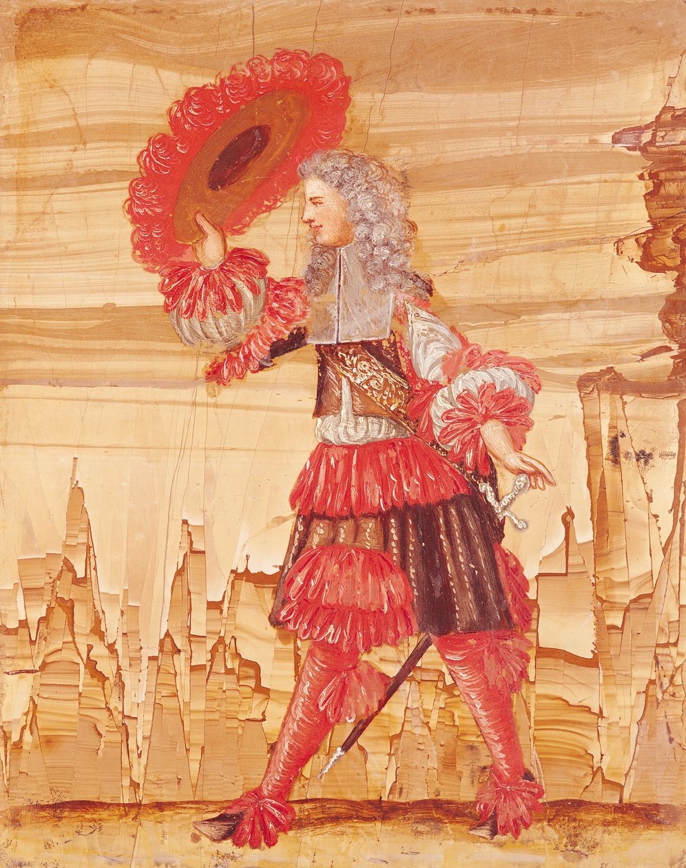 Pocquelin in der Rolle des Mascarille(Pocquelin in the Role of Mascarille (oil on stone))French School |