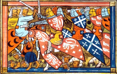 Schlacht zwischen Kreuzfahrern und Muslimen(Battle between Crusaders and Moslems)French School |