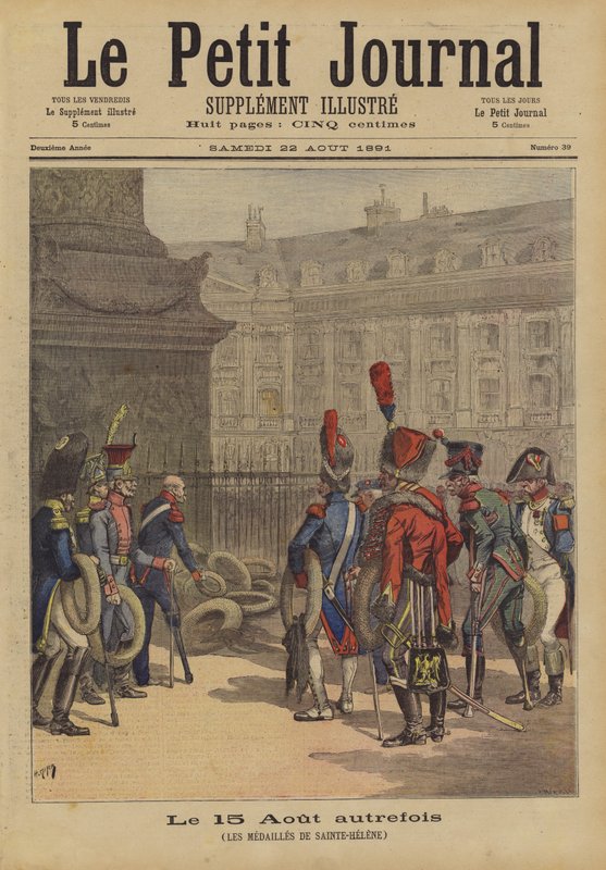 Der 15. August vergangener Tage, 1891 Hundertjahrfeier der Gründung der französischen Militärakademie in Saint-Cyr, Paris Napoleon wird von einem nervösen Leutnant während einer Parade in Schönbrunn angesprochen Hundertjahrfeier der Ecole Polytechnique Französische Infanterie Napoleons Abschied von der kaiserlichen Garde im Weißen Pferdehof des Schlosses Fontainebleau, 1814 General Rapp lässt Stabs, der den Kaiser ermorden wollte, von einem Gendarmen verhaften Illustration von Louis Bombled aus dem Buch „Das Memorial von Saint Helene“ von Graf Emmanuel de Las Cases: Kaiser Napoleon inspiziert die Schule von Saint Germain Napoleon sagte: Sehen Sie, Graf, meine Armeen sind überall siegreich. Ich sah ihn Lektionen erhalten, die ihn hätten erröten lassen Die Fahnen des aufgelösten 2. Regiments der Artillerie-Pontonniers werden in Les Invalides übergeben Die Alten der Alten Die Fahne des 200. Die letzte Parade von Friedrich III., Deutscher Kaiser und König von Preußen (1831-1888), im Jahr 1888 Pitt drillt Miliz am Walmer Castle im Jahr 1803 Der Sohn des Mikado in England Erste Überprüfung der Konsulargarde auf dem Exerzierplatz im Tuilerienpalast Titelblatt von Le Petit Journal, 9. April 1892 Das Hundertjährige Jubiläum der École Polytechnique, Titelseite des illustrierten Beilagenhefts von In Schoenbrunn, Napoleon I. Bonaparte (1769-1821) überprüfte die Truppen vor der Schlacht von Wagram am 5. und 6. Juli Unbekanntes Bild General Rapp verhaftet, durch einen Gendarmen, den jungen Stabs, der Kaiser Napoleon ermorden wollte, aus dem Buch „The Memorial of Saint Helene“ von Graf Emmanuel de Las Cases Das Hauptquartier Grenadiere und Füsiliere der preußischen Armee, 1857 Der Kaiser inspiziert die Schule von Saint-Germain Die Degradierung von Alfred Dreyfus Die italienischen Royals in Paris, der triumphale Einzug des Zuges in die Avenue des Champs-Elysees Illustration von Louis Bombled aus dem Buch „Das Memorial von Saint Helene“ von Graf Emmanuel de Las Cases: Ein ehemaliger Offizier Napoleons ruft unter der Restauration ehemalige Rekruten auf, das Kaiserreich abzulehnen, Teilsammlung