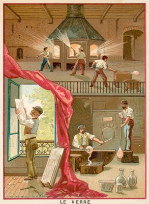 Geschichte des Glases: Böhmische Glashütte von Sankt Georgenthal, gegründet 1442 von P. Berka. Späte 19. Jahrhundert Liébig Chromolithographie Fleißige Arbeiter Glasherstellung. Innenansicht einer Flaschenfabrik Geschichte des Glases: Moderne Glaswaren und Glasherstellung Ende des 19. Jahrhunderts. Späte 19. Jahrhundert Liébig Chromolithographie Geschichte des Glases, Liebig-Karte, frühes 20. Jahrhundert Malerei auf Glas im 12. Jahrhundert Der Malerdekorateur von Theatern. Chromolithografie aus dem späten 19. Jahrhundert Glasmacher im 14. Jahrhundert Kristallherstellung Geschichte des Glases, Liebig-Karte, frühes 20. Jahrhundert Liebig-Karte mit der Glasindustrie Eine Glasfabrik Eine Töpferei Elektrizität Geschichte der Dampfmaschine: Newcomens atmosphärische Dampfmaschine Töpferei, Manufacture de Sèvres: Vakuum- und Druckgusswerkstatt. Gravur von 1885 in Venezianische Glasbläser, 14. Jahrhundert Porzellanherstellung: Brennen. Chromolithographie aus dem späten 19. Jahrhundert Herstellung von Buntglas, 12. Jahrhundert Eisen Porzellanherstellung: Drehen. Chromolithographie aus dem späten 19. Jahrhundert. Papier Liebig-Karte mit der Glasindustrie Handwerk: der Lackierer in seiner Werkstatt. In „Umfassende Beschreibung der Künste und Handwerke und Werkstätten für junge Leute“ von Johan Peter Vue. Hrsg. Nürnberg, Weigel und Schneider Eisen und Stahl. Inneres einer geschäftigen Schmiede Liebig-Karte mit der Glasindustrie Illustration von Louis Bombled aus dem Buch „Das Memorial von Sainte Helene“ von Graf Emmanuel de Las Cases: Feuer in Longwood, Private Sammlung Jean-Balthazar Keller