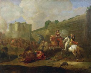 Die Schlacht von Cassano am 16. August 1705, graviert von Chavanne(The battle of Cassano on 16th August 1705, engraved by Chavanne (colour engraving))French School |