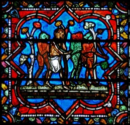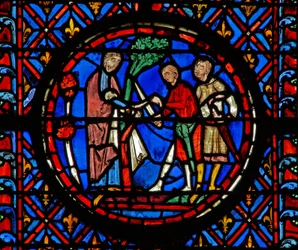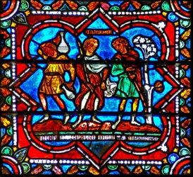 Fenster w17 zeigt eine Szene aus der Geschichte des verlorenen Sohnes: sein Bruder fragt nach(Window w17 depicting a scene from the Prodigal Son story: his brother enquires )French School |