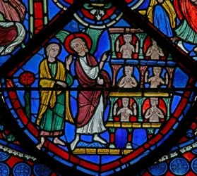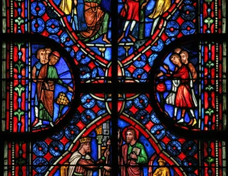 Fenster w11, St. Andreas gibt seine Kleider weg(Window w11 depicting St Andrew gives away his clothes )French School |