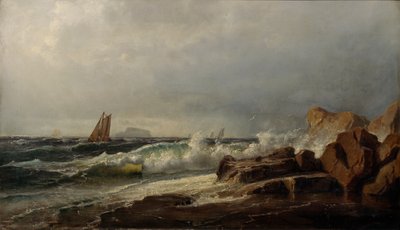 boot · schlepper · transport · transport · küste · meer · schiff · norwegen · skandinavien · skandinavisch · meer · wellen · norwegisch · felsig · felsen · ufer · brechung · abgehackt · losskoyta · malerei · mzmalerei · Private Collection / Bridgeman Images
