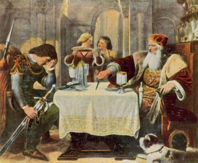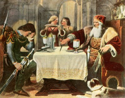 Eberhard der Greiner schneidet das Tischtuch zwischen sich und seinem Sohn Ulrich(Eberhard the Greiner cuts the tablecloth between himself and his son Ulrich)German School |
