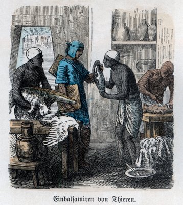 Alte Geschichte. Ägypten. Einbalsamierung von Tieren (Gravur)(Ancient History. Egypt. Embalming of animals ... (engraving))German School |