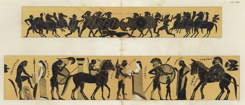 altertümlich · welt · bogenschütze · armeen · heer · schlacht · kämpfe · vogel · vögel · bogen · pfeile · klassisch · weiblich · kunst · fein · kunst · griechenland · griechisch · griechen · helm · helme · historisch · geschichte · hoplit · hopliten · pferd · pferde · männlich · mann · männer · militär · mythos · mythologie · mythen · gemälde · gemälde · phalanx · topf · töpfe · keramik · schild · schilde · soldat · soldaten · speer · speere · geschichten · geschichte · vase · vasen · krieger · krieger · waffe · waffen · frau · Private Collection / Bridgeman Images · / Look and Learn