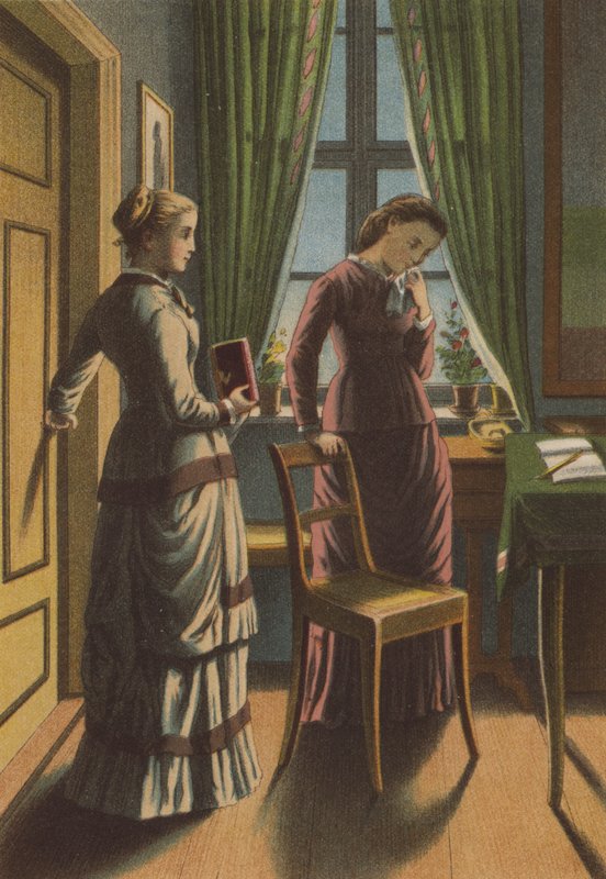 kostüm · zuhause · mädchen · tagebuch · kind · kindheit · stiefmutter · stieftochter · frau · kleid · schreiben · Private Collection / Bridgeman Images · / Look and Learn |