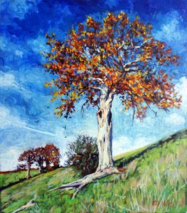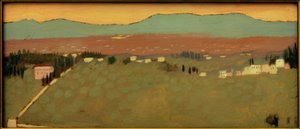 landschaft · baum · kreuz · hügel · hügel · grüner hügel · grüne hügel sonnenuntergang · orange · wolken · blutrot · blüte · rote blüte · trauer · vorübergehen · leben · neues leben · hoffnung · fülle · leere · melancholie · loslassen · balhandled · Malen · Aquarell · Private Collection / Bridgeman Images |