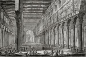 Allegorisches Frontispiz von Rom und seiner Geschichte, aus Ponte Fabricio Via Appia Carceri. Mappe 7 Teil eines geräumigen und prächtigen Hafens für die alten Römer, der auf einen großen Marktplatz führt, 1761-80 Petersplatz mit dem Petersdom in der Vatikanstadt Ansicht der Piazza Navona über den Ruinen des Circus Agonalis. Kirche Sant Theater des Marcellus Carceri-Serie, Platte XIV Frontispiz für die Ansicht des Pantheon, aus der Serie Innenraum der Basilika San Paolo fuori le Mura, Rom, aus Ansichten von Rom: Das Aquädukt von Nero, 1775 Tempel des Portunus Portikus der Octavia