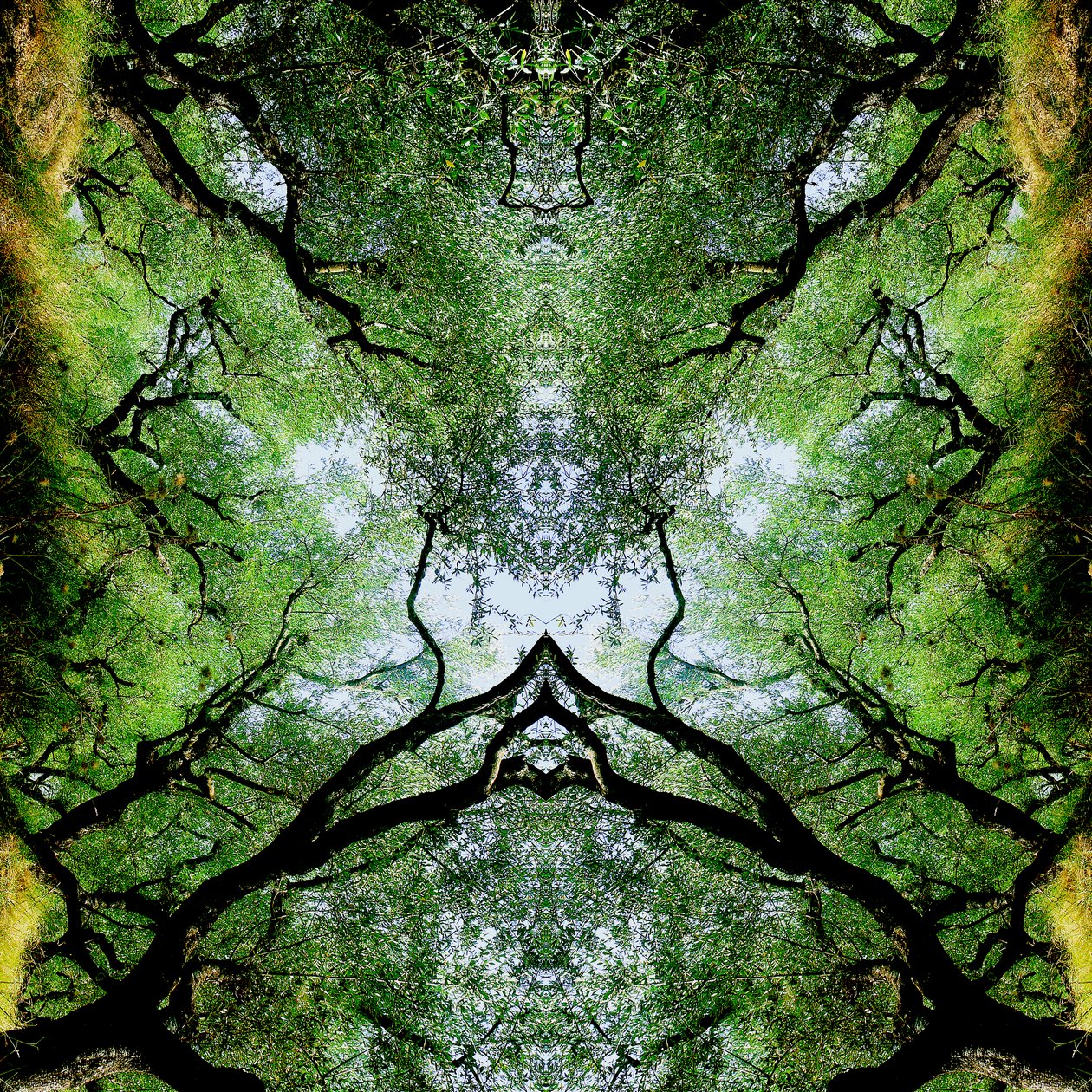 kaleidoskopisch · abstrakt · digitale fotografie · symmetrisch · symmetrie · 20. jahrhundert · 21. jahrhundert · muster · organisch · abstrahiert · natur · natürlich · zweige · baum · bäume · blätter · laub · baldachin · holz · wald · wald · grün · Private Collection / Bridgeman Images |