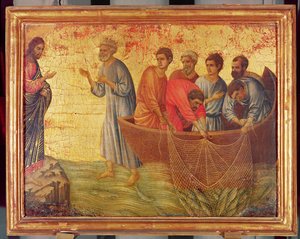 (Miraculous catch of fish, detail from Antependium of St Peter Enthroned by Guido da Siena (circa 1250 -1300), tempera and gold on wood)