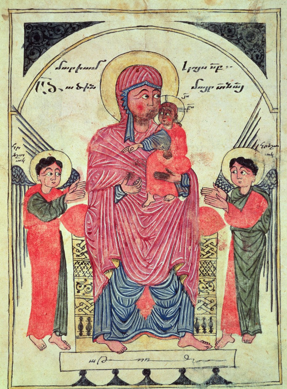 engel · madonna · maria · manuskript · thronend · mittelalterlich · evangiles · Armenian Cathedral and Museum, Julfa, Isfahan, Iran / Bridgeman Images