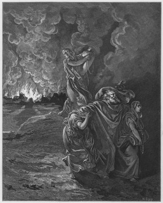 Lot und seine Töchter fliehen aus Sodom(Lot and his daughters fleeing Sodom)Gustave Dore |