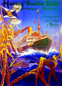 Plakat, das Reisen zwischen Hamburg und New York mit der Reederei Cunard bewirbt(Poster advertising travel between Hamburg and New York with the shipping company Cunard (colour lithograph))Hans Bohrdt |
