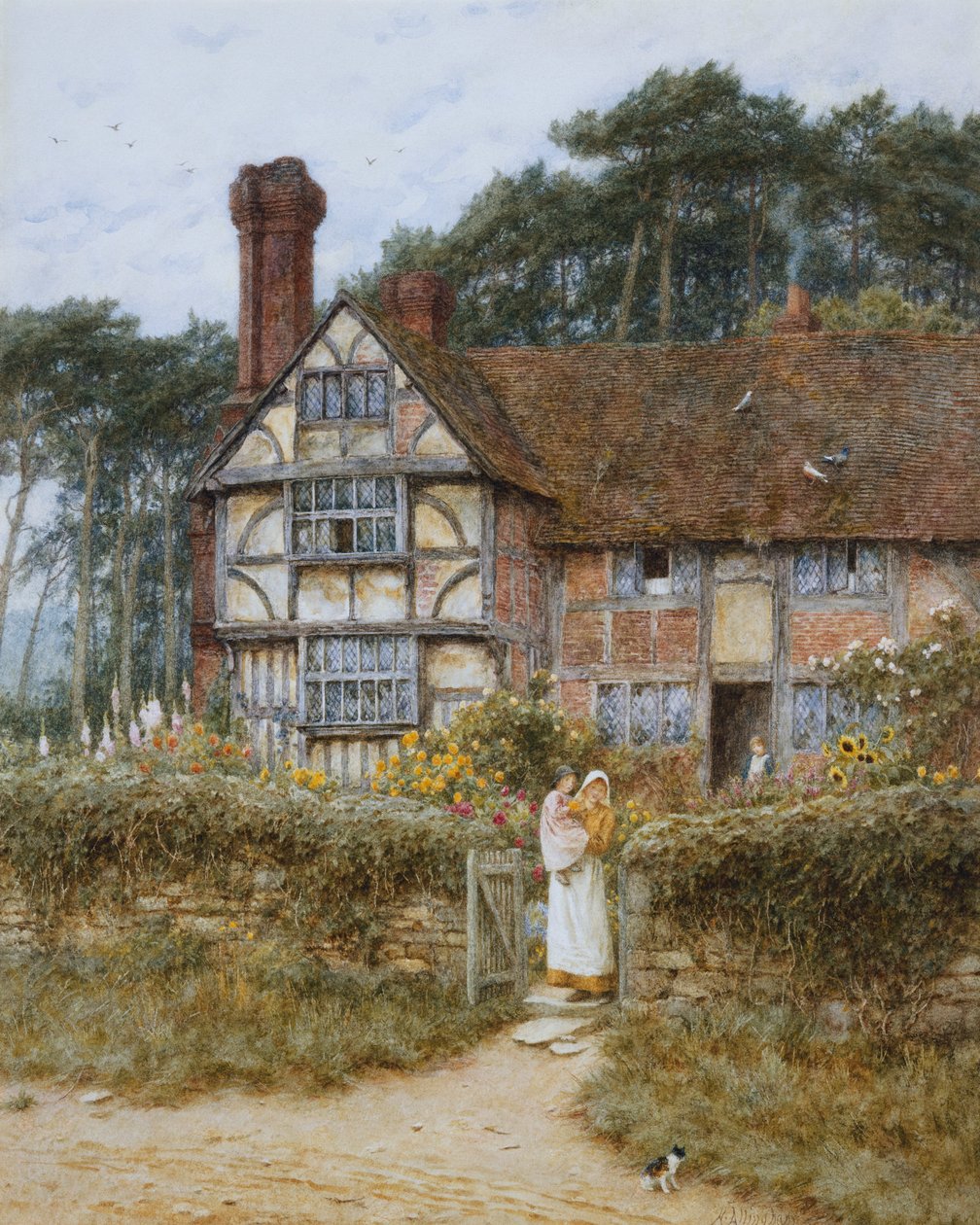 dach · künstler britisch · gelände · im freien · garten · rauch · fenster · land · tageszeit · klettern · tier jung · bauernhof · weiblich · zu hause · frauen · kletterpflanze · viktorianische kunst · herrenhaus · ländlich · gebäude außen · zuschauer · grenze · taube · jung · häuschen · malerei des 19. jahrhunderts · natürlicher raum · ende des 18. jahrhunderts · häuser · mutter · draußen · kleidung · großbritannien · tierbaby · stehend · tagsüber · wald · anwesen · menschen · 18. jahrhundert · dächer · künstlerin weiblich · kind · holz · kleidung · 18. jahrhundert · hintergrundleute · überdacht · jugendlich · zwei · wald · europäischer künstler · landwirtschaftlich · außen · material · england · schritt · mensch · naturphänomene · kindheit · haltung · bewaldet · holz · wohnort · künstlerin-frau · landwirtschaft · herrenhaus · alltag · großbritannien · land · erwachsener · ende des 18. jahrhunderts · leben · jugend · natur · frau · pflanze · planke · landwirtschaftsgebäude · architektur · künstlerin europäerin · tier · mauer · kittel · schornstein · kleidung · haus · kind · wege · kätzchen · kletterer · holz · schornstein · architektonisches merkmal · kleidung · britische inseln · britischer künstler · zwei personen · kinder · kleidung · junge anima l · architektonisch · straße · vogel · mutter · eltern · vereinigtes königreich · hände benutzen · kätzchen · künstlerin · europa · halten · routine · familie · bauen · durchgangsstraße · helen allingham · unstead · godalming · Allingham · Surrey · Schornstein · Großbritannien · Private Collection / Bridgeman Images |