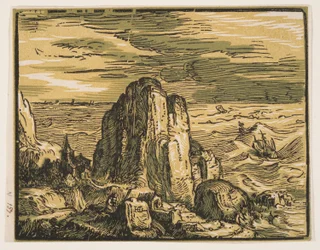 Aus einem Satz von 4 Landschaften: Klippe am Meer(From a set of 4 Landscapes: Cliffon the seashore. )Hendrik Goltzius |