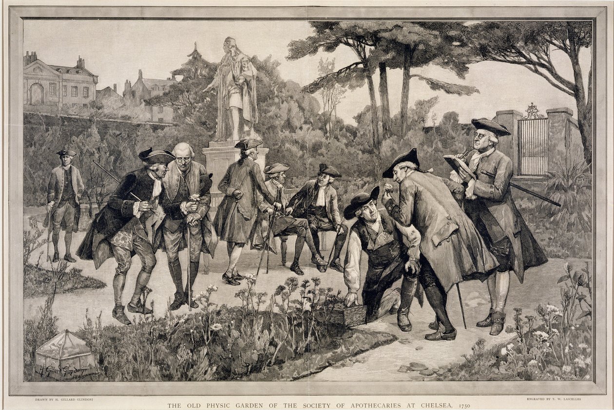Der alte Physic Garden der Society of Apothecaries in Chelsea, 1750, graviert von Thomas W. Lascelles, 1890(The Old Physic Garden of the Society of Apothecaries at Chelsea, 1750, engraved by Thomas W. Lascelles (fl.c.1885), 1890 )Henry Gillard Glindoni |