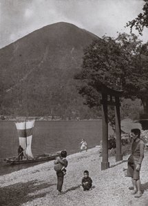 wetter · transport · transport · wolke · wolken · szenisch · leute · mann · mann · männer · asiatisch · asien · boot · boote · künste · berg · berge · land · ufer · buch · kerl · ansicht · kontinent · geographie · japan · japanisch · honshu · lakeside · position · jahrhundert · vista · literatur · konzept · zwei leute · fuji · einfassung fuji · einfarbig · wassertransport · schwarzes u. weiß · schwarzes und weiß · see yamanaka · yamanashi · 1910s · 20. jahrhundert · photograph · landscape · herbert ponting · macmillan · ponting · herbert · herbert george ponting · in lotus-land japan · macmillan publishers · publishers · macmillan publishers ltd · macmillan co · mika-dzuki-kosui · three days moon lake · yamanakako · The Print Collector/Heritage Images |