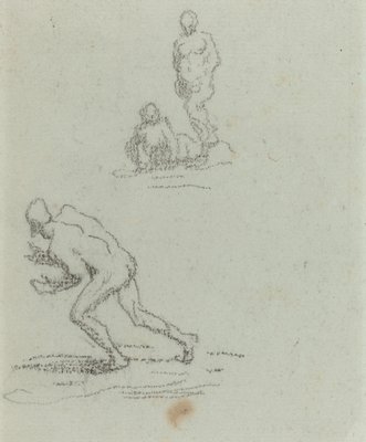 Badende(Bathers (black chalk on green laid paper))Honore Daumier |