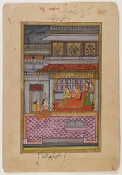 Dipaka Raga, Seite aus einer verstreuten Ragamala Serie, ca. 1800(Dipaka Raga, page from a dispersed Ragamala series, c.1800 (wc & gold on paper))Indian School |