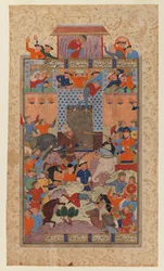 Folio aus einem Shahnameh: Die Iraner erobern Afrasiyabs Festung(Folio from a Shahnameh: The Iranians Capture Afrasiyabs Fortress, c.1580-1590 (ink & opaque wc on paper))Iranian School |