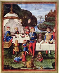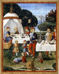 kind · kinder · kinder · kinder · kinder · kinder · erkältung · kind · pädiatrie · kleines kind · kleine kinder · kleines kind · nur kinder · mahlzeit · essen · essen · essen · essen · mahlzeit · affe · affen · affe · affe · primat · primaten · makaken · tier · tiere · wildlebende tiere · wild lebende tiere · wild lebende tiere · mehrere tiere · hoflich · landschaft · picknick · draußen · fürstlich · bildung · picknicken · höflichkeit · im freien · zelt · männlich · renaissance · Massimiliano · Biblioteca Trivulziana, Milan, Italy / Bridgeman Images