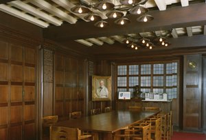 interieur · tisch und stühle · bibliothek · bücherregale · stuck · studium · italienisch · bildung · italien · Villa di Celle, Pistoia, Italy / Bridgeman Images |