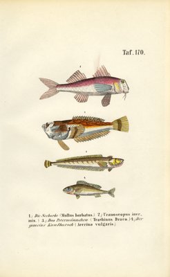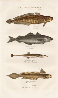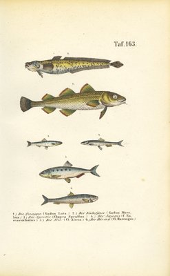 Wirtschaftsfische aus der Kabeljau- und Heringsfamilie von J. W. Tenhaeff. Verfügbar als Kunstdruck auf Leinwand, Fotopapier, Aquarellkarton, Naturpapier oder Japanpapier.