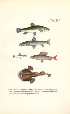 Deutsche Flussfische Schalentiere Seltsame Fische Seltsame Fische aus dem Ganges Meeresfische europäischer Gewässer Süßwasserfische der Karpfenfamilie Ophicephalus und Ophidium Forellenarten Kabeljau, Thunfisch, Lachs und Stör, Illustration aus Arten von Makrelen Fliegende Fische, Hecht und Schmerle Atlantischer Lachs, Salmo salar 1, Thunfisch, Thunnus-Arten 2, Atlantischer Hering, Clupea harengus 3, und Atlantische Makrele (Makrele), Scomber scombrus 4. Handkolorierter Kupferstich aus Friedrich Johann Bertuch Fischen: Lachs, Forelle, Äsche, Karpfen, Brachse, Hecht, Barsch, Schleie. 1792 Verschiedene Fische Dies sind vier schöne Fische Ordnungen der Fische Seltsame Handelsfische Seltsame und schöne Fische Seltsame Fische Seltsame Fische Deutsche Flussfische Schöne Fische