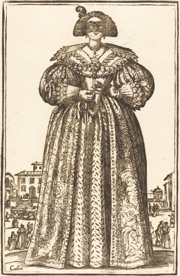 Maskierte Adlige Frau, aus La Noblesse de Lorraine, ca. 1620-23(Masked Noble Woman, from La Noblesse de Lorraine (verso), c.1620-23 )Jacques Callot |
