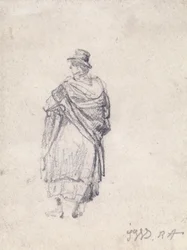 Rückansicht einer Landfrau mit Hut und Schal(Back View of Country Woman in Hat and Shawl)James Ward |