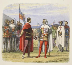 der prinz · edward der schwarze prinz · erpresst eine amnestie von pedro dem grausamen · nach der schlacht von najara · könig von mallorca · johannes von gent · herzog von lancaster · Sir John Chandos · Private Collection / Bridgeman Images · / Look and Learn