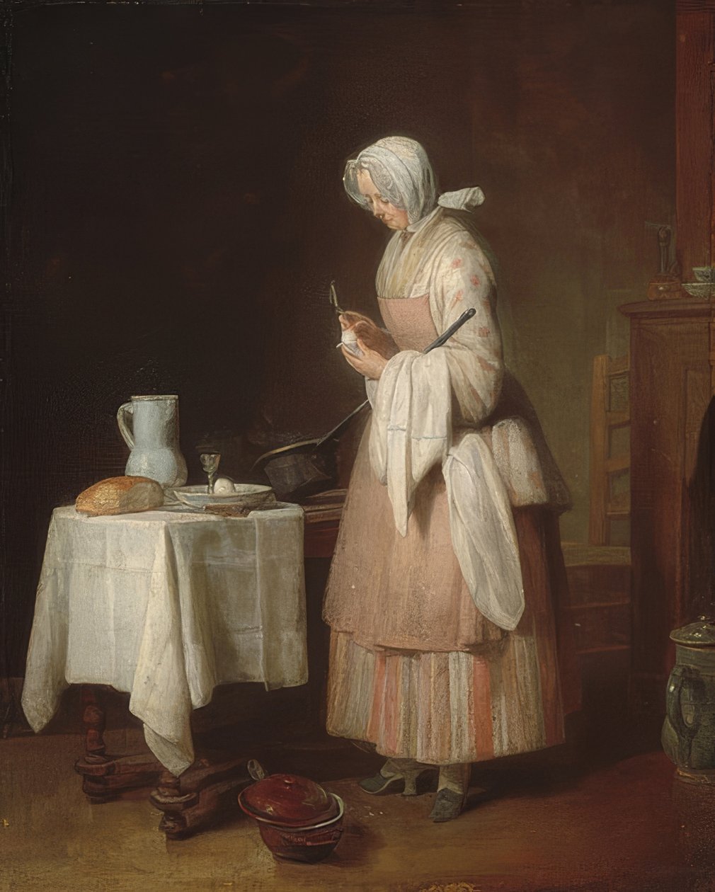1699-1779 · aufmerksame · chardin · eier · frau · frauen · gallery · hans · haube · jahrhundert · jean · jean-baptiste · krankenschwester · krug · küche · küchenmädchen · kueche · leinwand · lwd. · magd · medizin · national · pellen · pflege · schürze · simeon · siméon · stieltopf · washington · weiblich · weibliche · weiblicher · weibliches · -/ARTOTHEK