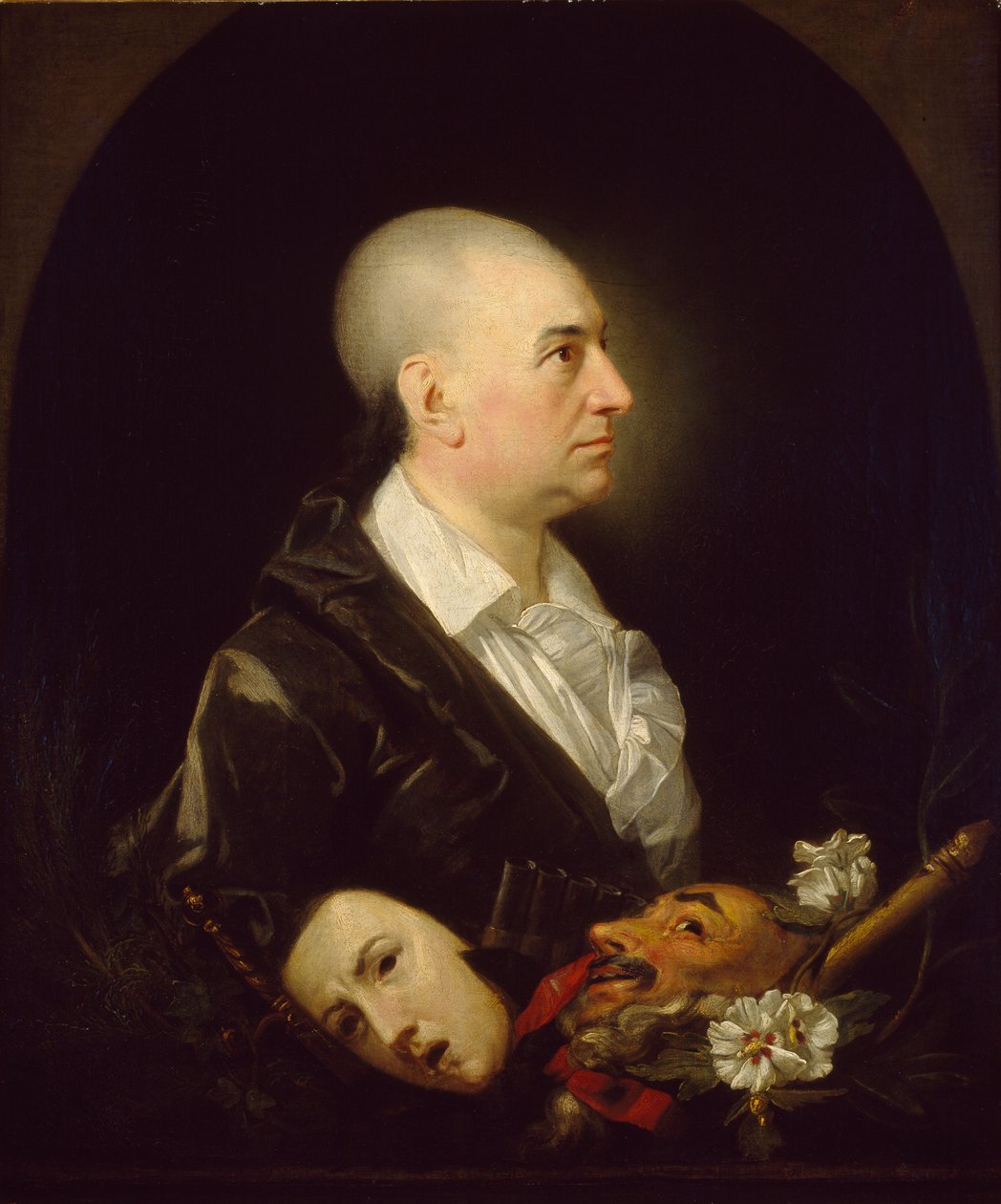 deutschland · england · leute · schwarzes · mann · innen · zuhause · mann · männer · schablone · deutsch · künste · land · unterhaltung · form · kunst · kerl · ernst · theater · besetzung · kleidung · britisch · englisch · farbe · farbe · neoklassisch · kleid · position · jahrhundert · großbritannien · beruf · nach innen · bild · jacke · studioschuß · konzept · rasiert · stützen · fungieren · eine person · oval · schauspieler · schauspielerin · produzent · thespian · stückeschreiber · neoklassisch · neoclassicism · schwarzer hintergrund · 18. jahrhundert · achtzehntes jahrhundert · david garrick · david · portrait · garrick · johan zoffany · zoffany · johan · johann zoffany · john zoffany · black colour · ashmolean museum · Ashmolean Museum, University of Oxford/Heritage Images