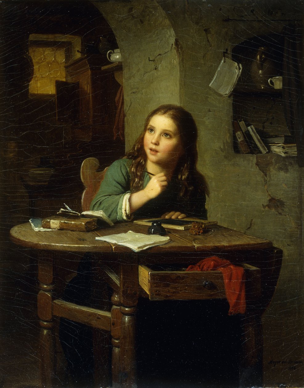 1860er jahre · raum · innenraum · 19. jahrhundert · nachdenken · tageszeit · denken · Öl auf leinwand · Ölgemälde · schulkinder · wegschauen · jung · bildende kunst · abneigung · malen des 19. jahrhunderts · lernen · bekleidung · nachdenken · lernen · denken · hausaufgaben · tagsüber · kleidungsstück · menschen · dekor · innendekoration · kleidung · kaukasier · bildung · europäische kunst des 19. jahrhunderts · kaukasische ethnizität · jugendlich · weibliches kleidungsstück · europäischer künstler · mensch · nachschlagen · haltung · langes haar · nachdenklich · ende des neunzehnten jahrhunderts · kontemplation · gedanke · 19. jahrhundert · haare · schulkind · innen · drinnen · deutsche kunst · person · sitzend · künstler deutsch · möbel · jugend · sitzend · künstler europäisch · ethnische herkunft · tisch · ende des 19. jahrhunderts · kleidung · künstler-deutsch · schauen · kleiden · drinnen · kleiden · kunstwerk · schulmädchen · schulkind · schreibtisch · deutscher künstler · eine person · 082011upload · malen · meyer · biedermeier · johann georg meyer · johan georg meyer · bieidermeier · meyer von bremen · johann georg meyer von bremen · Private Collection / Bridgeman Images |