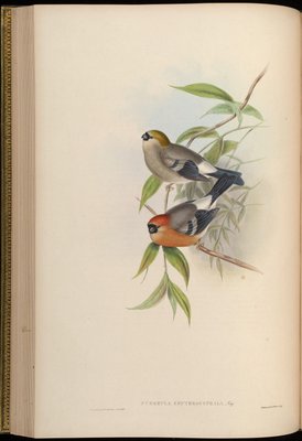 Pyrrhula orientalis = Pyrrhula pyrrhula rosacea von John Gould. Verfügbar als Kunstdruck auf Leinwand, Fotopapier, Aquarellkarton, Naturpapier oder Japanpapier.