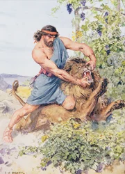 bibel · simson · töten · löwe · sampson · Private Collection / Bridgeman Images · / Look and Learn |