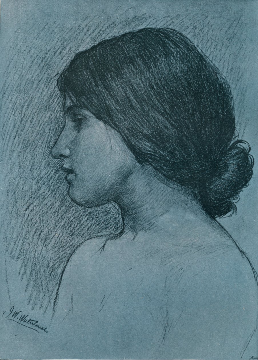 blau · seitenansicht · frau · frauen · frau · leute · studie · jung · schönheit · kopf · haut · farbe · farbe · eleganz · profil · elegant · schön · haar · jahrhundert · braunes haar · frisur · dame · konzept · brötchen · eine person · frisur · metapher · frisur · publikation · 19. jahrhundert · 1900s · 20. jahrhundert · 19.jahrhundert · portrait · ralph · nevill · john william waterhouse · waterhouse · john william · studio publications · ralph nevill · studio volume 18 · The Print Collector/Heritage Images |