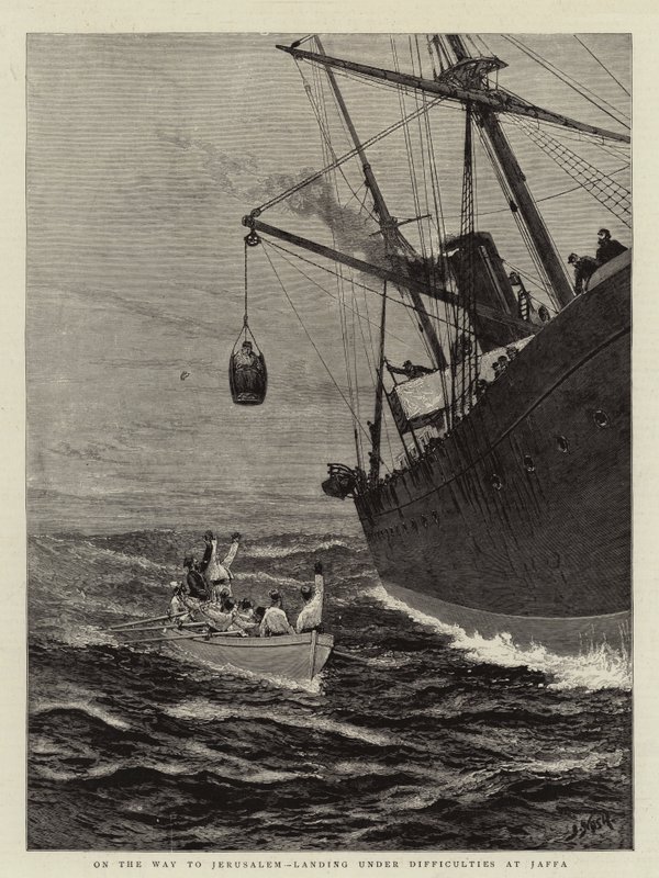 Auf dem Weg nach Jerusalem, Landung unter Schwierigkeiten in Jaffa(On the Way to Jerusalem, landing under difficulties at Jaffa )Joseph Nash |
