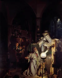 Alchemist versucht, den Stein der Weisen zu entdecken(Alchemist tempting to discover the philosophical stone Painting by Joseph Wright Of Derby (1734-1797) 18th century Sun. 1,27 X 1,01m Derby, Derby museum)Joseph Wright of Derby |