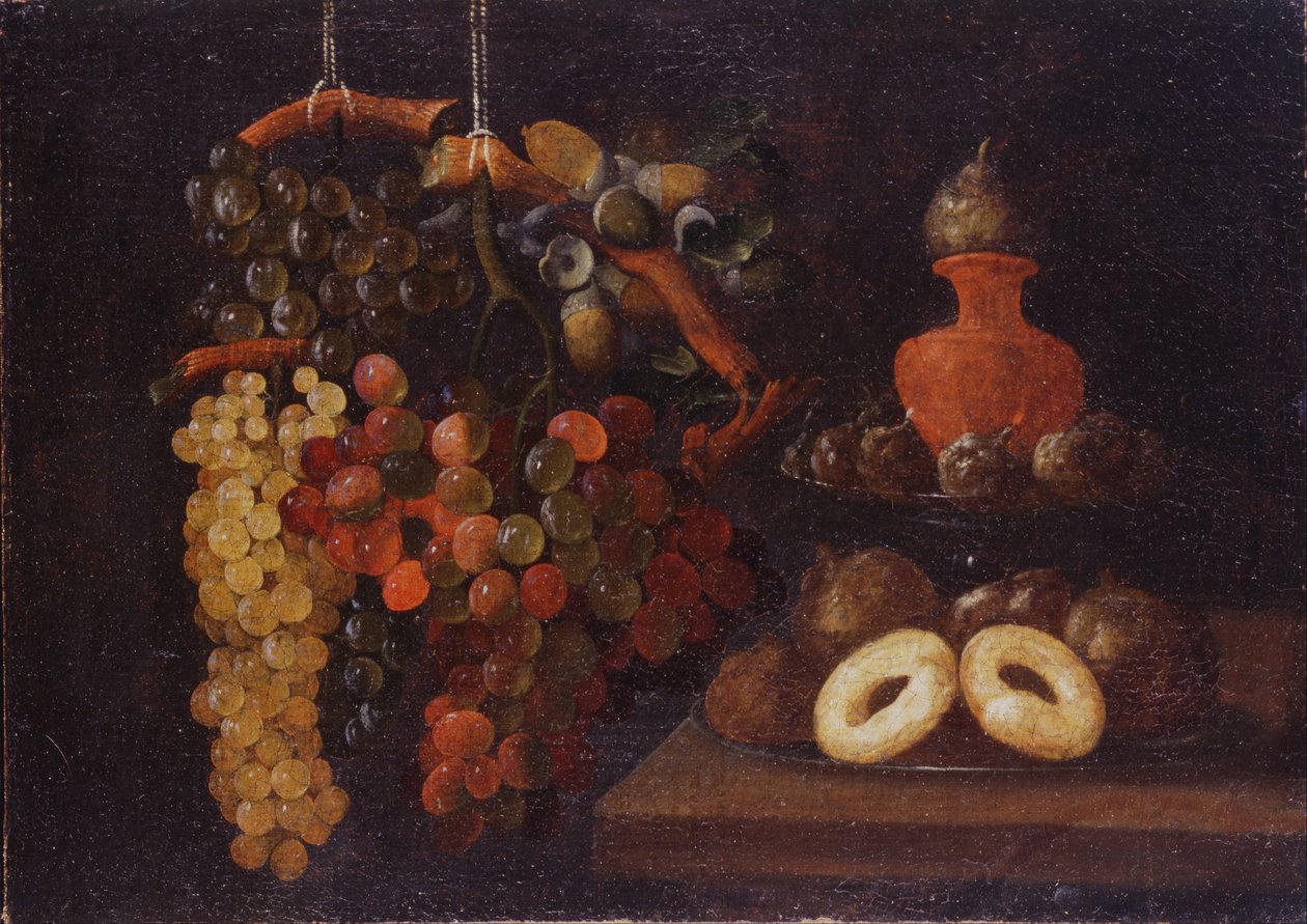 Stillleben mit Trauben und Kuchen von Juan de Espinosa. Verfügbar als Kunstdruck auf Leinwand, Fotopapier, Aquarellkarton, Naturpapier oder Japanpapier.