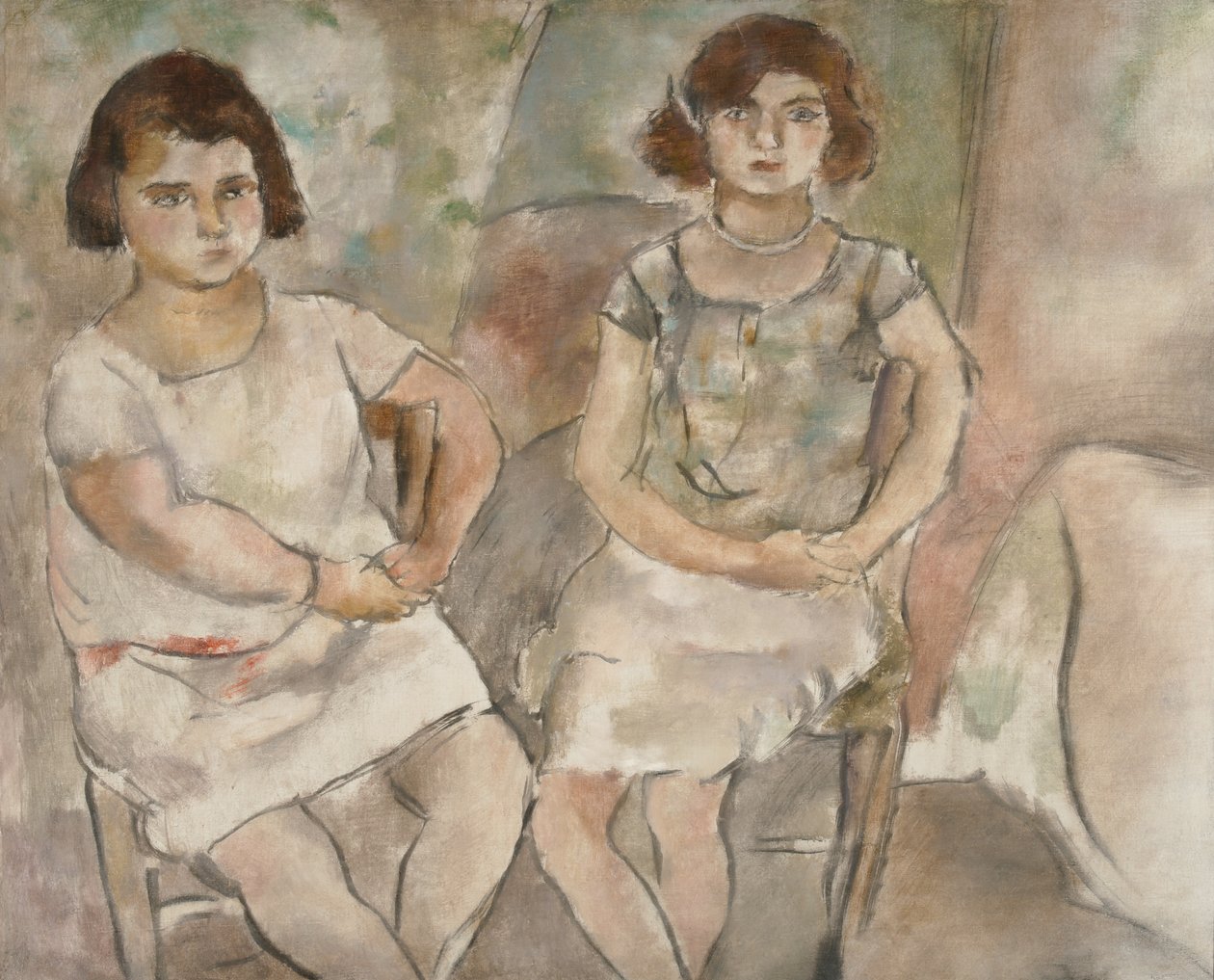 stuhl · 20. jahrhundert · sitz · frühes 20. jahrhundert · cremefarben · Öl auf leinwand · weiblich · Ölgemälde · mädchen · frauen · braunes haar · brünett · feierlich · nebeneinander · ernst · kleidung · creme · kleidungsstück · menschen · dekor · moderne kunst · weiße farbe · innendekoration · kleidung · dunkles haar · frühes 20. jahrhundert · temperament · muster · weibliches kleidungsstück · verhalten · mensch · pascin · weiß · haltung · bulgarischer künstler · sitzgelegenheiten · haare · hände gefaltet · 1920er jahre · innen · drinnen · sitzend · nana · möbel · elfenbein · frau · sitzend · gemustert · kleidung · kleid · drinnen · zwei personen · kleidung · 20. jahrhundert · expressionist · expressionismus · kunstwerk · mädchen · farbe · malerei · rosette · jules pascin · design · 1920er Jahre · Julius Mordecai Pincas · Private Collection / Bridgeman Images |