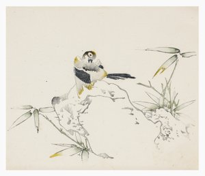 Eisvogel schaut auf Vogel am Wasser(IJsvogel kijkend naar vogel bij water Bloemen- en vogelschetsen van Kano Tsunenobu (series title) Kano Tsunenobu kacho gafu (series title on object))Kano Tsunenobu(print maker),Aoki Kôsaburô(printer),Aoki Kôsaburô(publisher) |