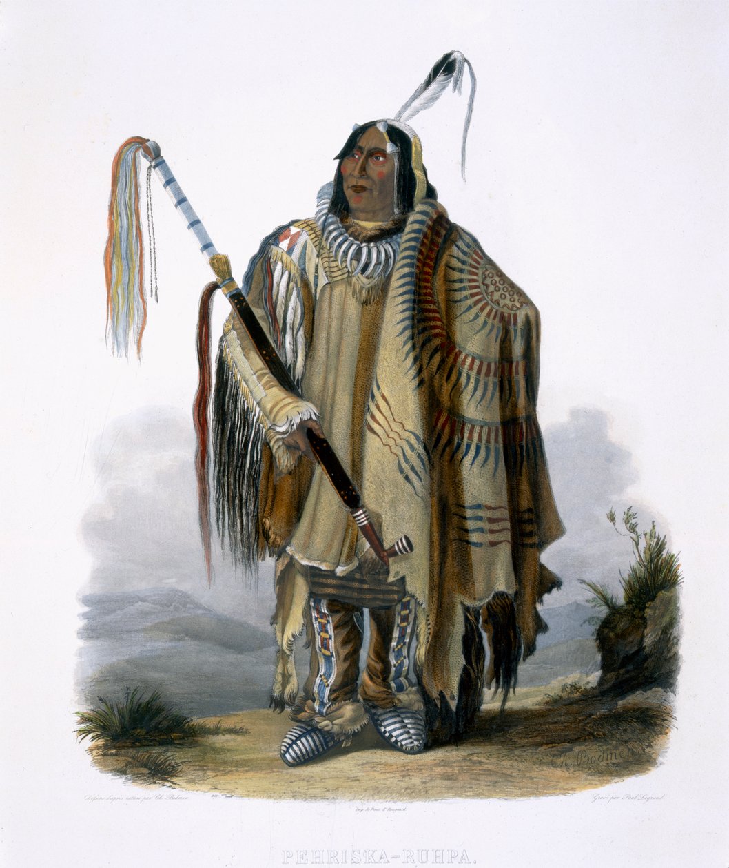 Pehriska-Ruhpa, ein Minatarre oder Dickbauch-Indianer, Tafel 17 aus Band 2 von 'Reisen im Inneren Nordamerikas', graviert von Paul Legrand, 1844(Pehriska-Ruhpa, a Minatarre or Big-Bellied Indian, plate 17 from Volume 2 of 'Travels in the Interior of North America', engraved by Paul Legrand, 1844 (aquatint))Karl Bodmer |