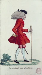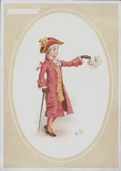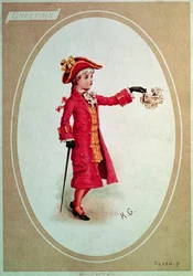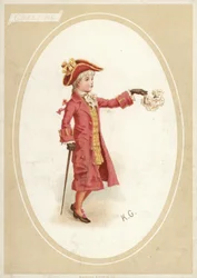 Junge im roten Anzug, der ein Taschentuch schwenkt(Boy in red suit, waving handkerchief (colour litho))Kate (after) Greenaway |