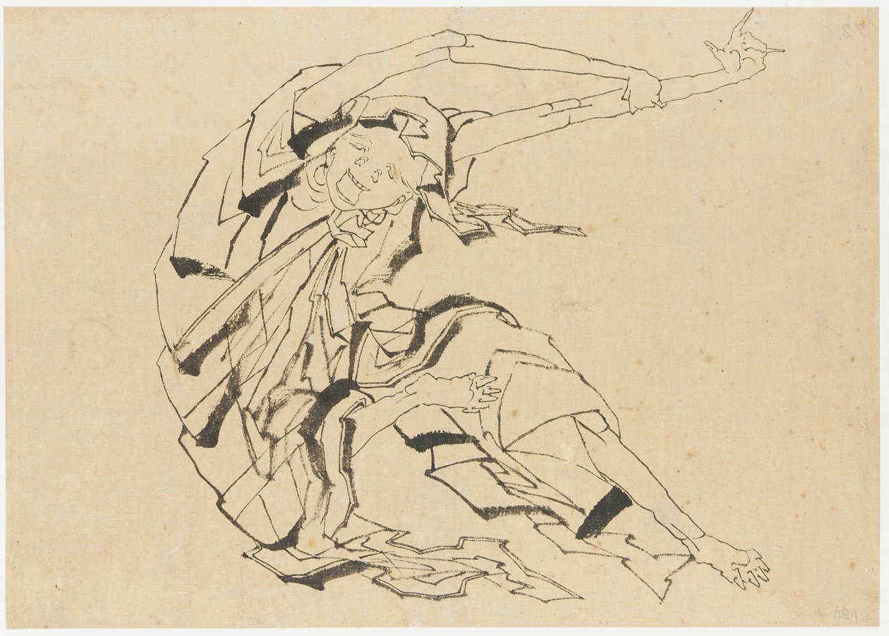 (Long-armed man stretching, Edo period, 19th century. )