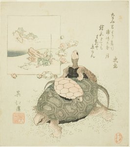 Schildkröte auf einer Schriftrolle, spätes 18. bis frühes 19. Jahrhundert von Katsushika Hokusai